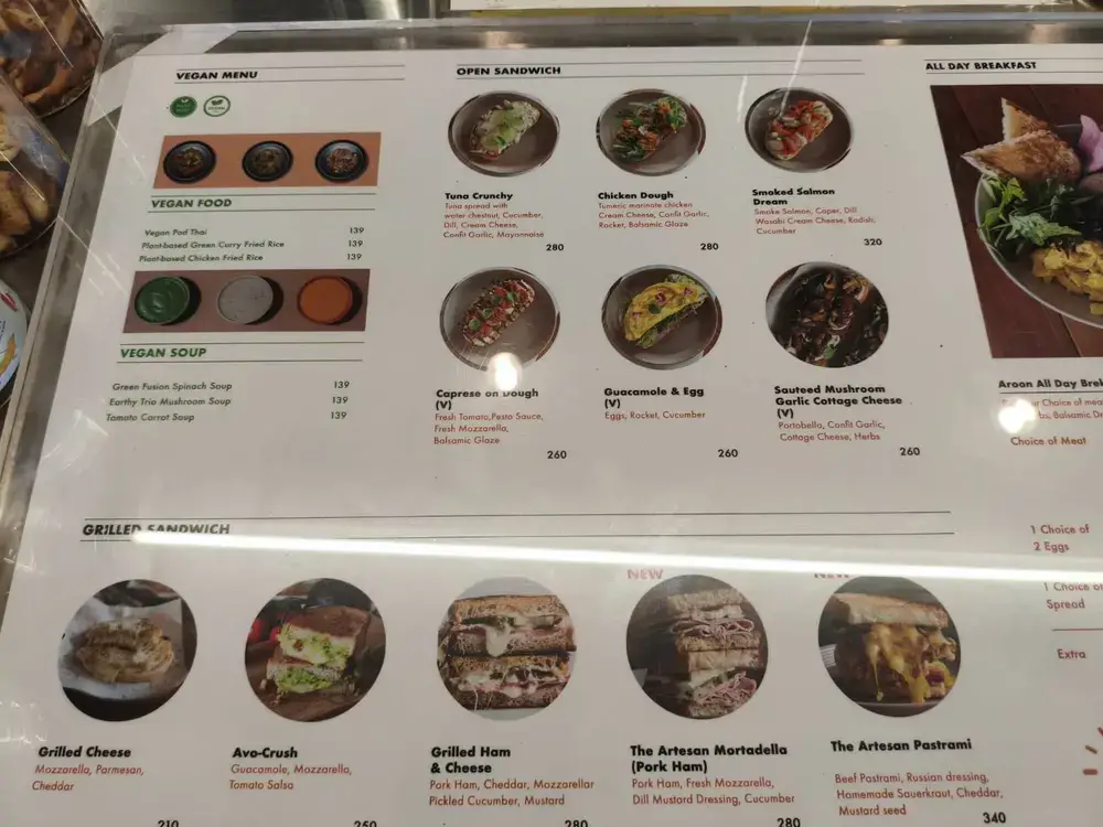 プロンポン駅近くのAroon Cafeのメニューサンドイッチなどの軽食も充実