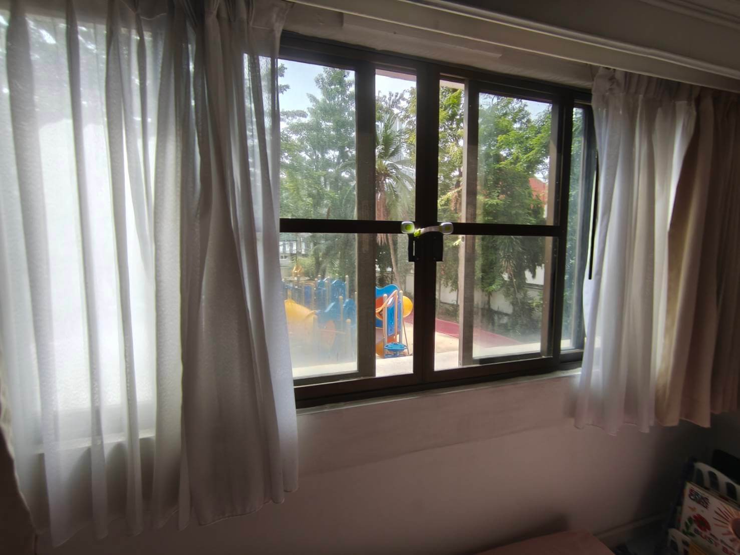 Move the baby mat and wipe the floor with wet cloth. Also, move the plastic bottles in my office and wipe the floor there.