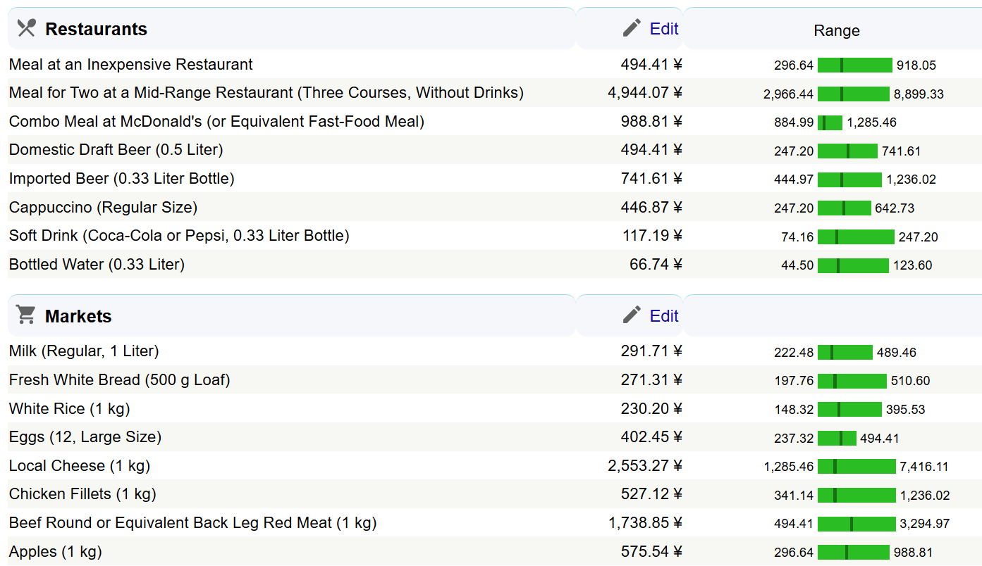 タイの物価 2026年参照:NUMBEO